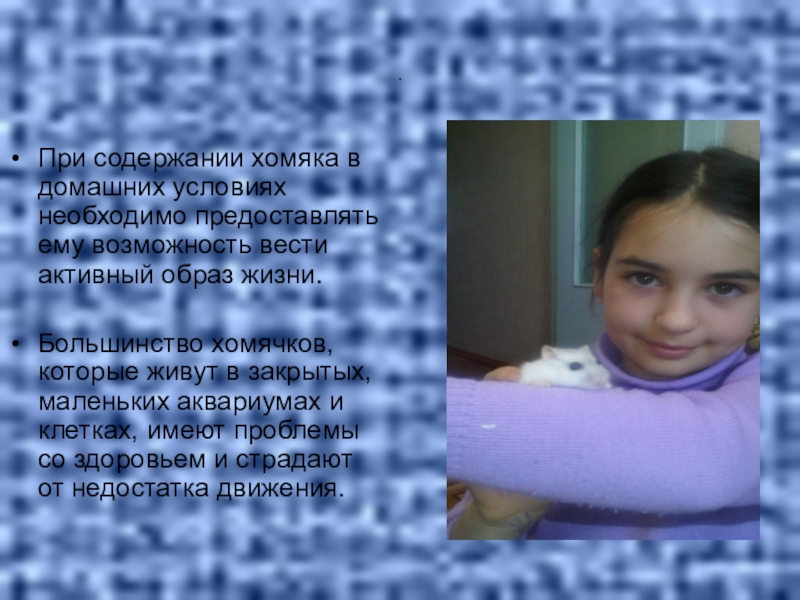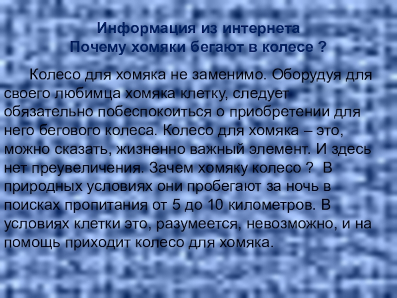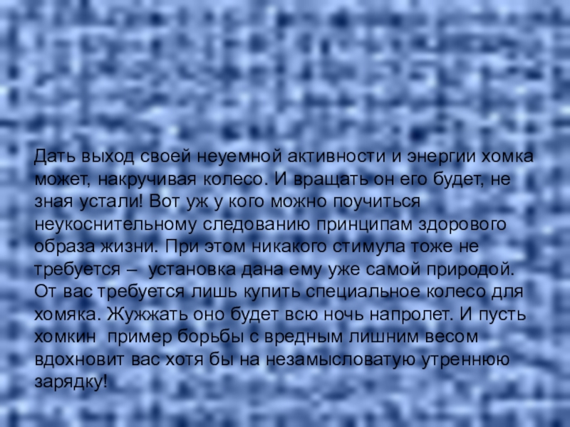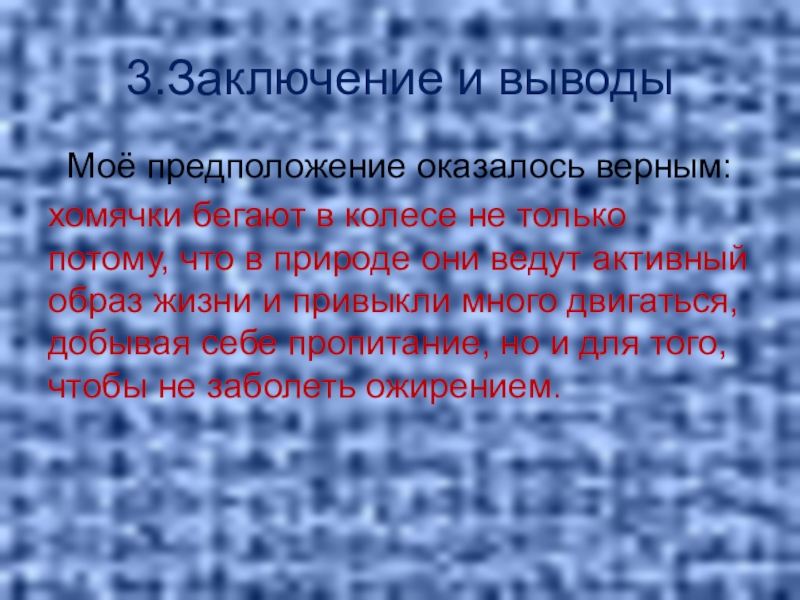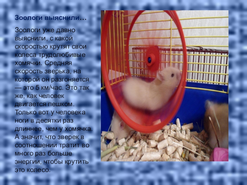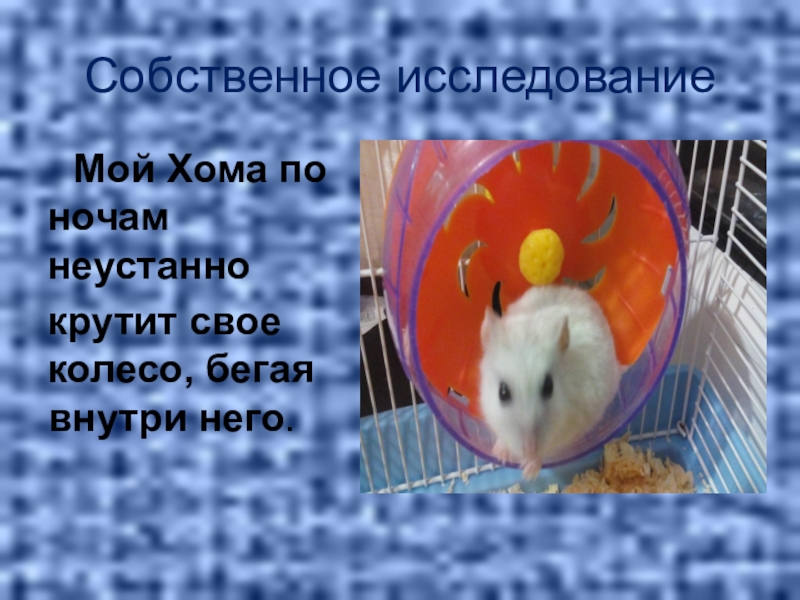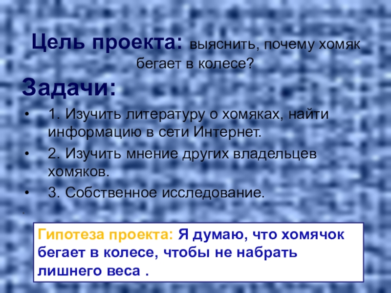 Гипотеза проекта: Я думаю, что хомячок бегает в колесе, чтобы не набрать лишнего веса .