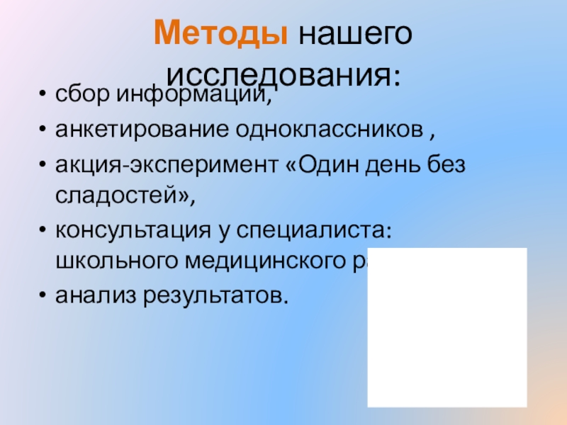 Слайд 5Методы нашего исследования: