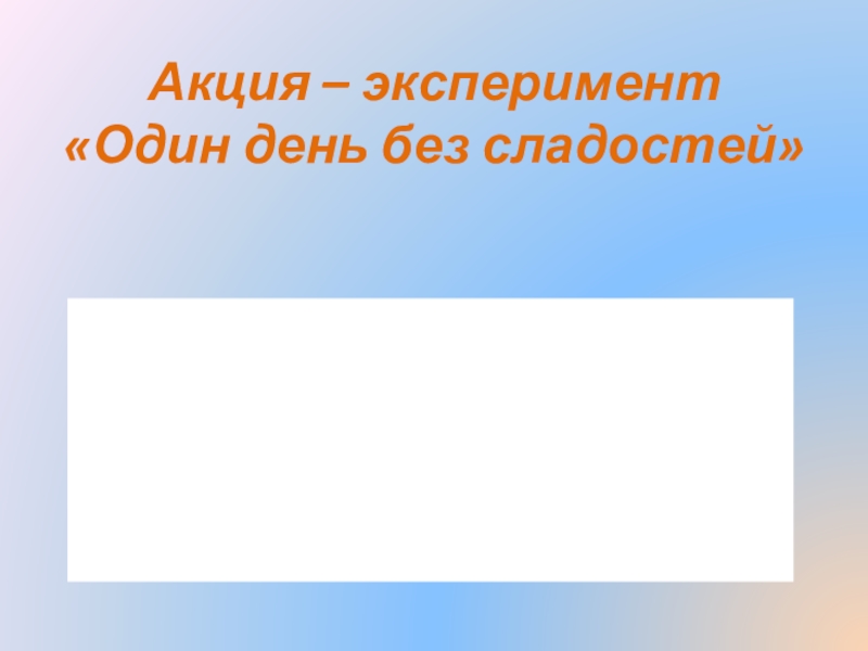 акция-эксперимент «Один день без сладостей»,
