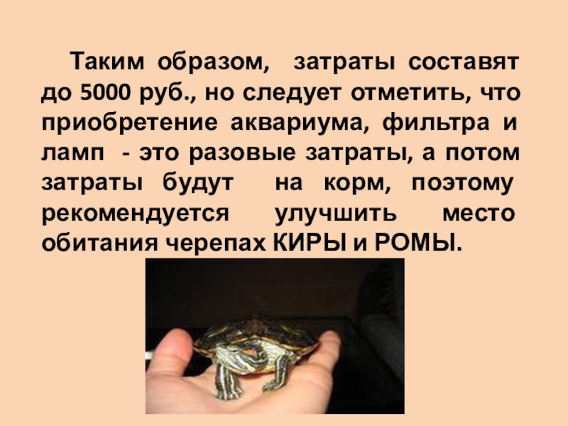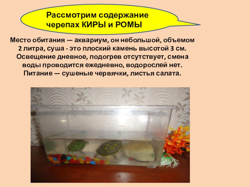 Рассмотрим содержание черепах КИРЫ и РОМЫ