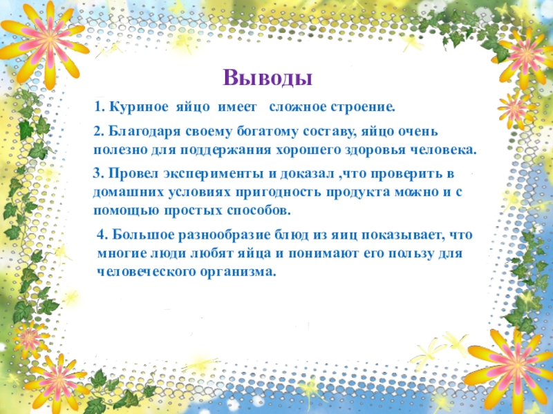 4. Большое разнообразие блюд из яиц показывает, что многие люди любят яйца и понимают его пользу для человеческого организма.