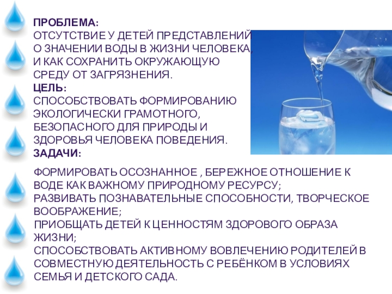 Формировать осознанное , бережное отношение к воде как важному природному ресурсу;