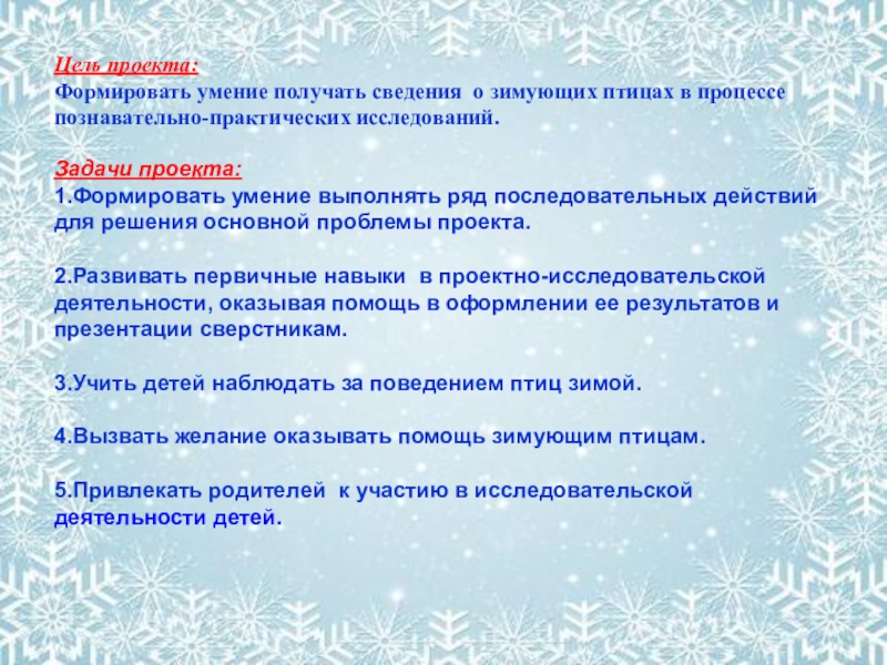 4.Вызвать желание оказывать помощь зимующим птицам.