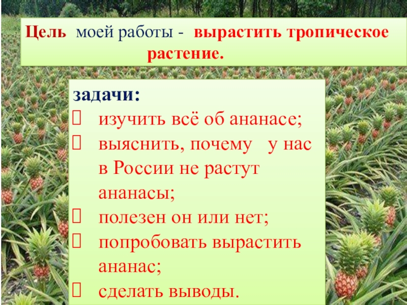 выяснить, почему у нас в России не растут ананасы;