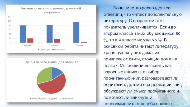 Слайд 7 Большинство респондентов ответили, что читают дополнительную литературу.