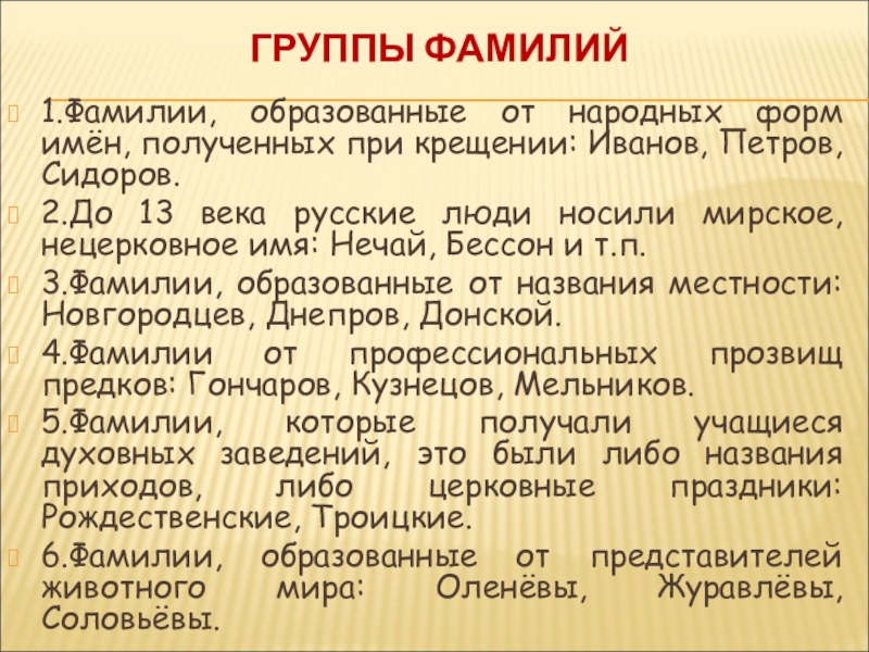 Слайд 7ГРУППЫ ФАМИЛИЙ