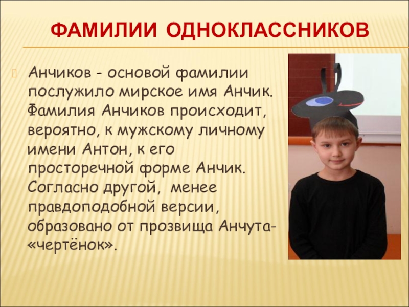 Слайд 9ФАМИЛИИ ОДНОКЛАССНИКОВ