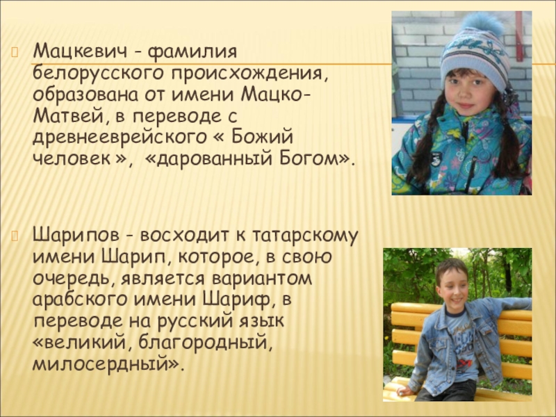 Слайд 10Мацкевич - фамилия белорусского происхождения, образована от имени Мацко-Матвей, в переводе