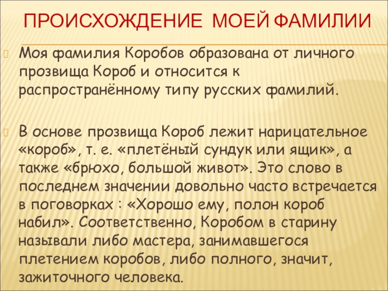 Моя фамилия Коробов образована от личного прозвища Короб и