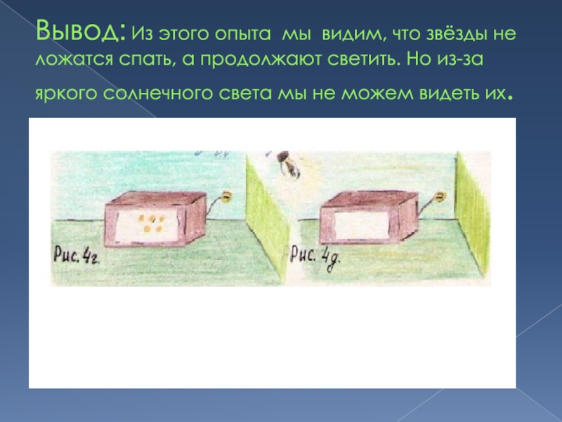 Слайд 12Вывод: Из этого опыта мы видим, что звёзды не ложатся спать,