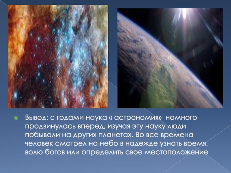 Слайд 8Вывод: с годами наука « астрономия» намного продвинулась вперед, изучая эту
