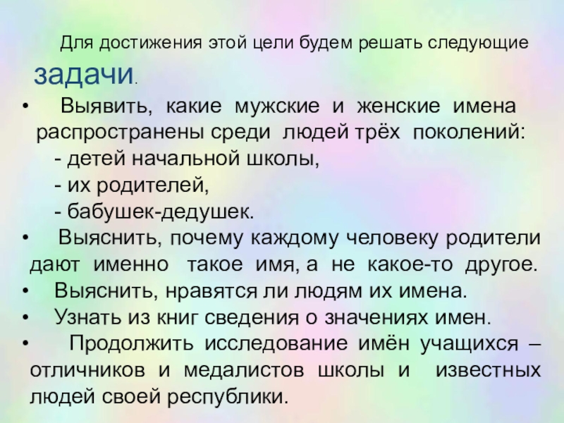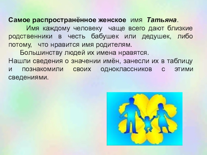 Выяснить, почему каждому человеку родители дают именно такое имя, а не какое-то другое.