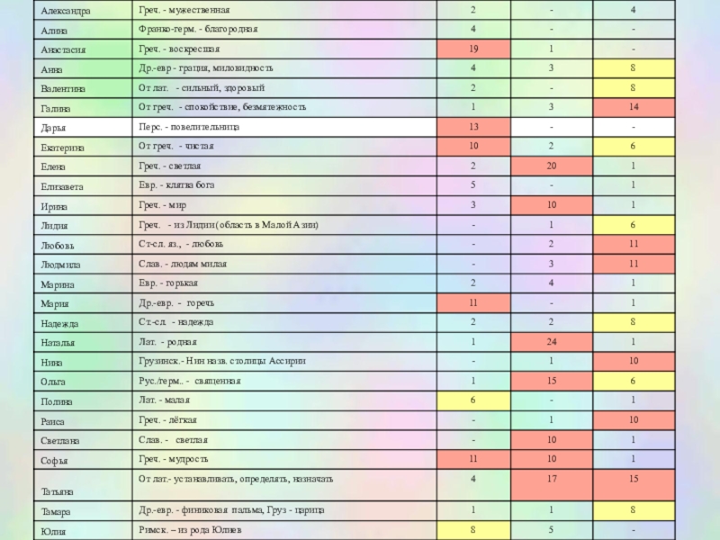 Слайд 10Анкетные сведения об именах.