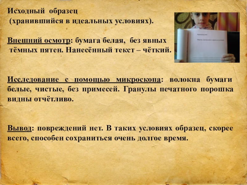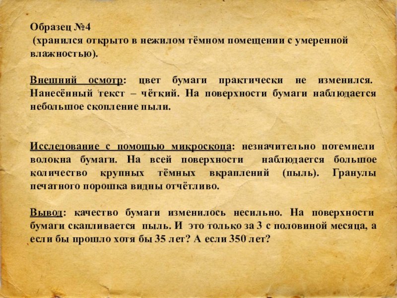 Кроме того, был сохранён ещё один образец, который хранился в условиях близких к идеальному