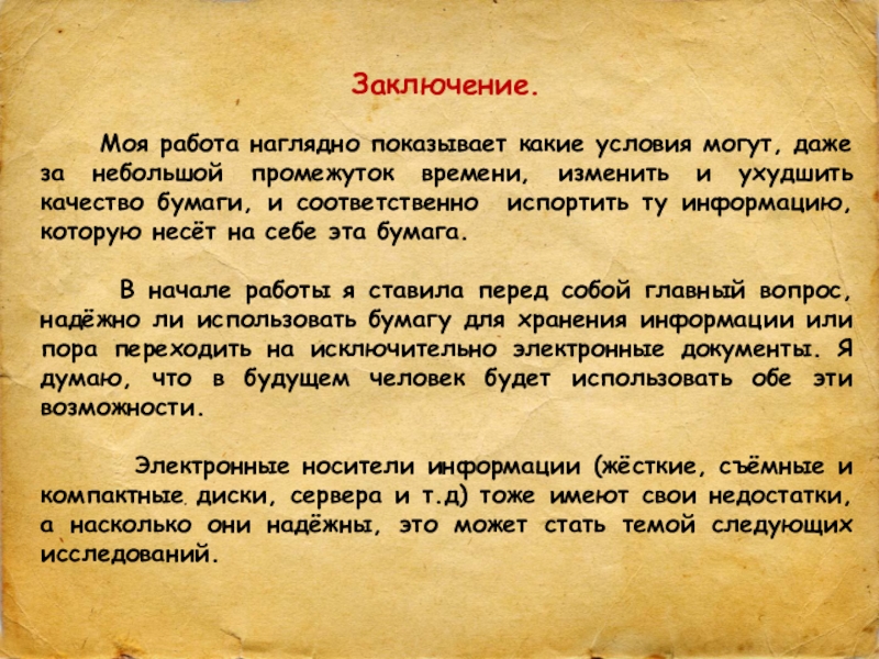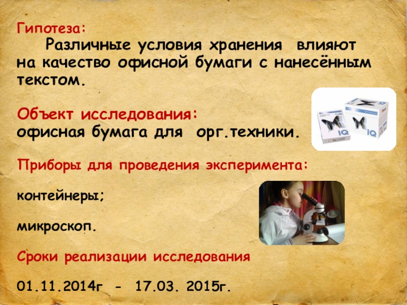 Тема работы: «Исследование воздействия