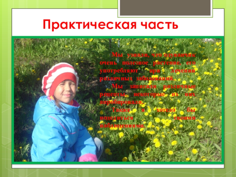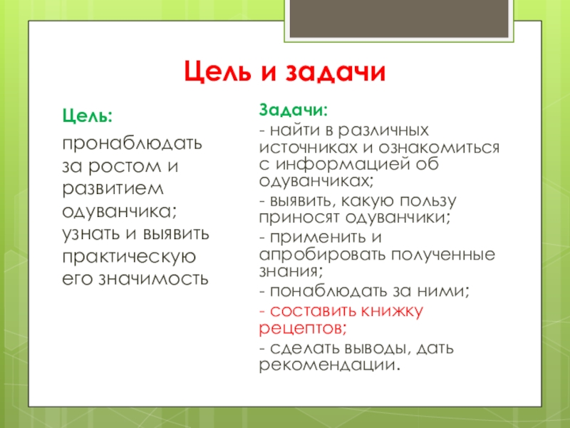 - найти в различных источниках и ознакомиться с информацией об одуванчиках;