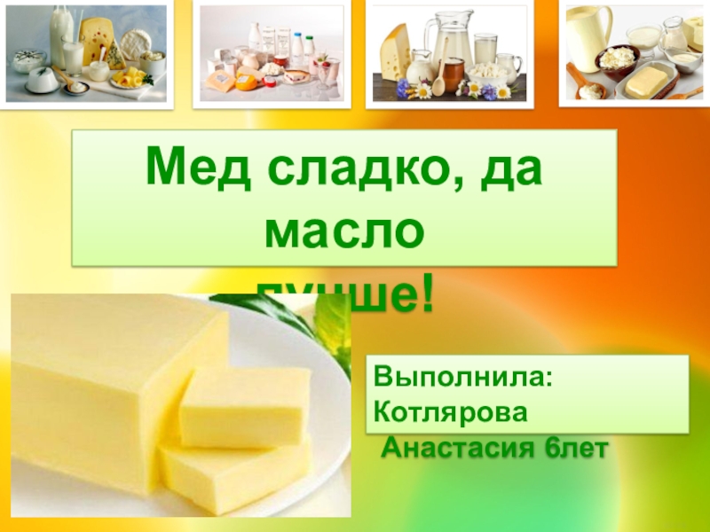Мед сладко, да маслолучше!Выполнила: Котлярова Анастасия 6лет