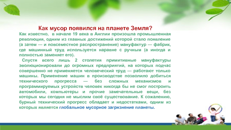 Проблема загрязнения планеты Земля мусором сегодня очень актуальна и останется таковой