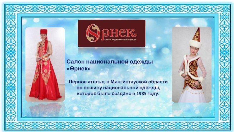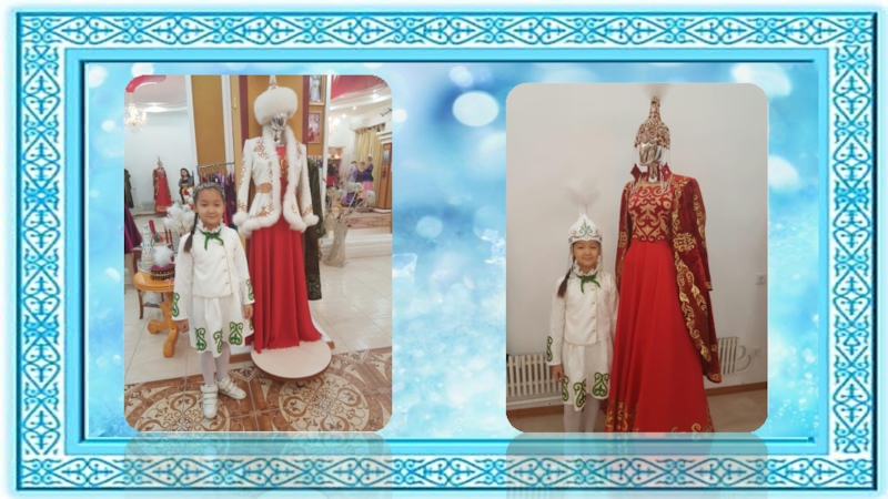 развития одежды, декор и орнамент как украшение, познакомилась с лучшими домами моды Казахстана и коллекцией танцевальных костюмов народного хореографического ансамбля «Жорға», на сегодняшний день я попробовала себя в роли дизайнера одежды и с мамой создали свою модель одежды.