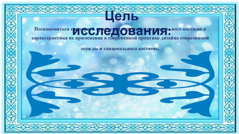Слайд 3Познакомиться с историей орнамента казахского национального костюма и характеристика их применения