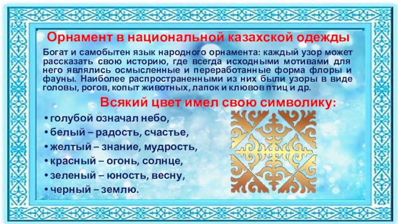 Изучив историю орнамента в казахской национальной одежде, ее особенности, виды, историю