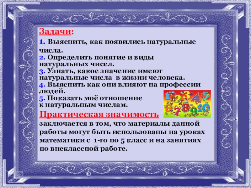 3. Узнать, какое значение имеют натуральные числа в жизни человека.