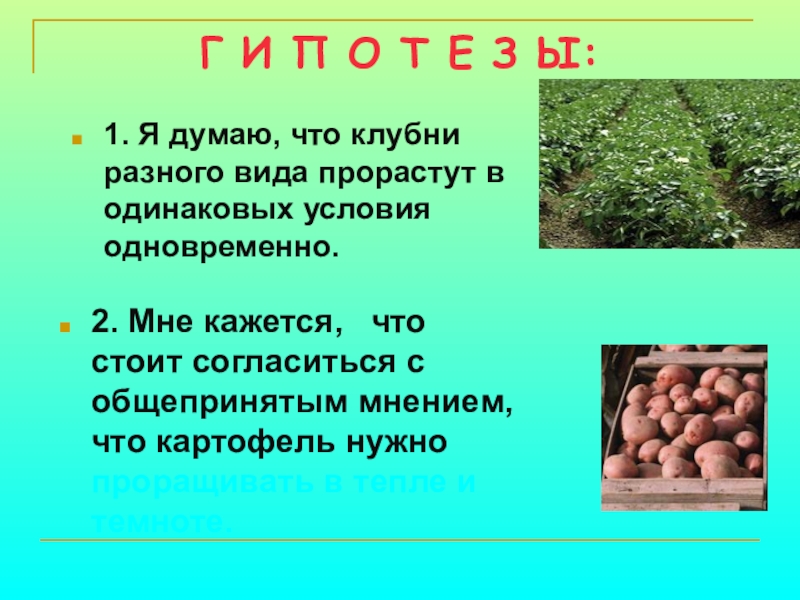 2. Мне кажется, что стоит согласиться с общепринятым мнением, что картофель нужно проращивать в тепле и темноте.