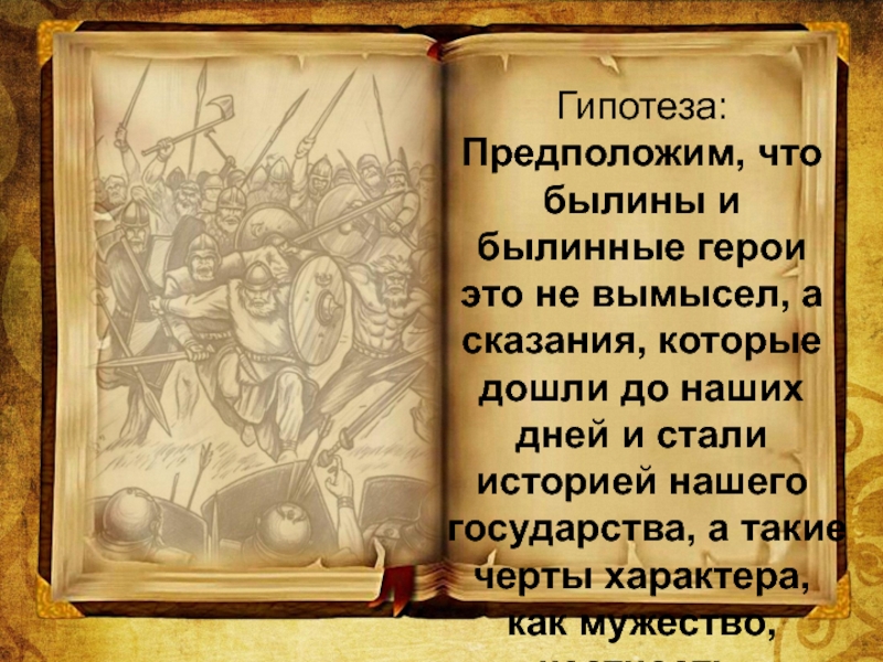Слайд 3Гипотеза: Предположим, что былины и былинные герои это не вымысел, а