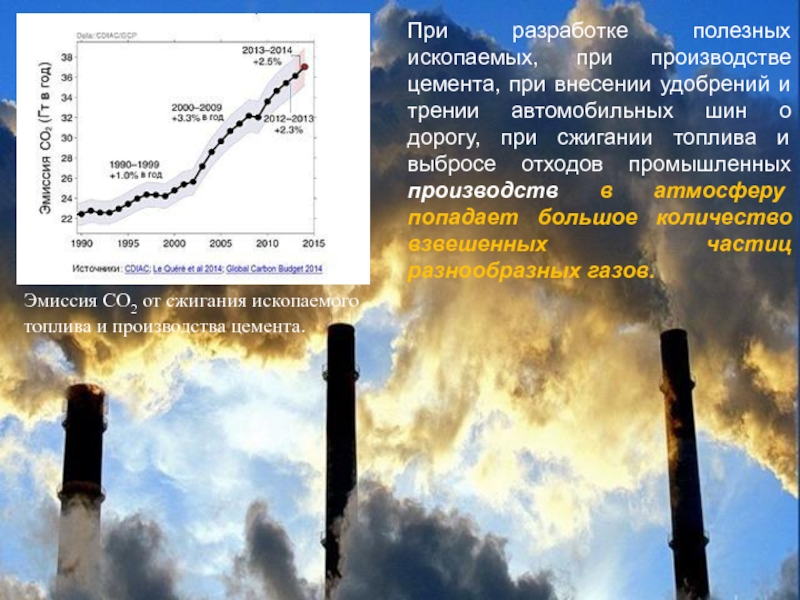 Эмиссия СО2 от сжигания ископаемого топлива и производства цемента.