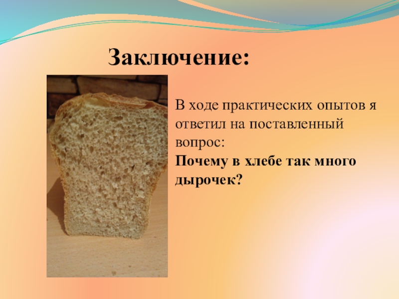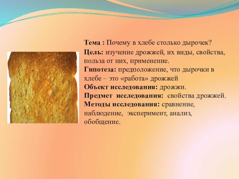 Тема : Почему в хлебе столько дырочек?