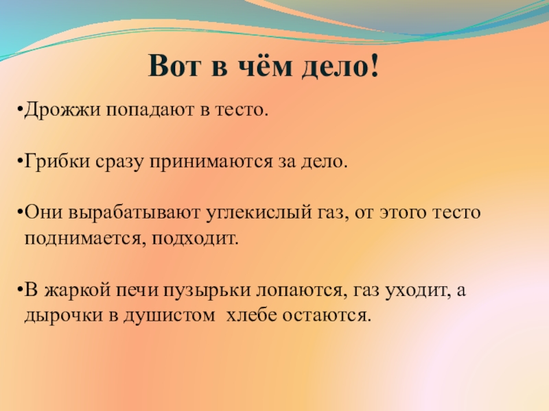 В жаркой печи пузырьки лопаются, газ уходит, а дырочки в душистом хлебе остаются.