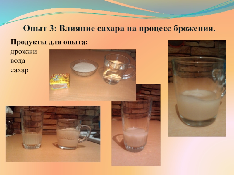 Опыт 3: Влияние сахара на процесс брожения.