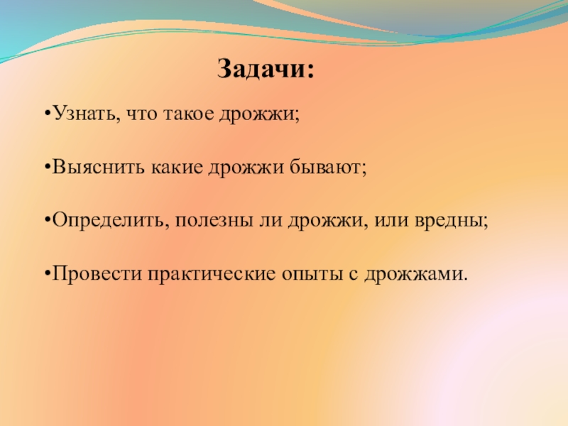 Цель: изучение дрожжей, их виды, свойства, польза от них, применение.