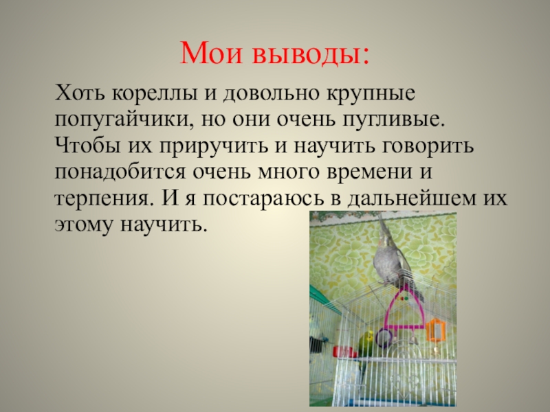 Презентация, доклад исследовательской работы Попугай вида корелла