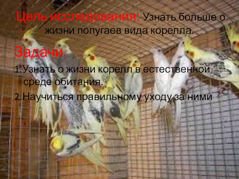 Слайд 2Цель исследования: Узнать больше о жизни попугаев вида корелла.