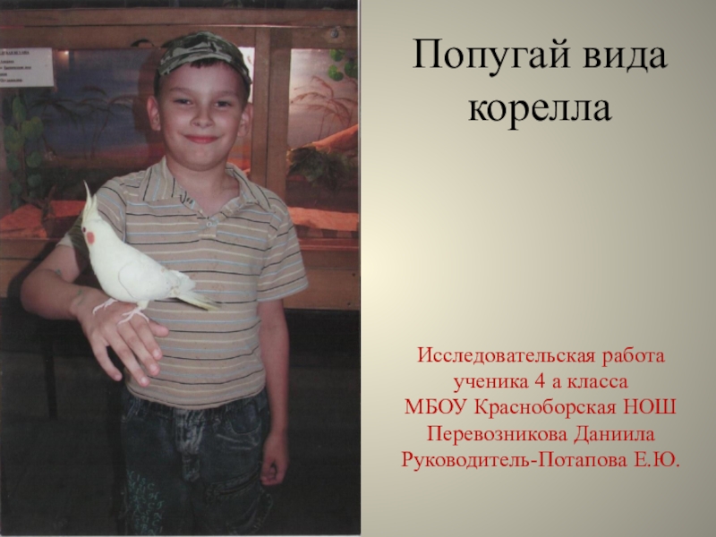 Попугай вида кореллаИсследовательская работаученика 4 а классаМБОУ Красноборская НОШПеревозникова ДаниилаРуководитель-Потапова Е.Ю.