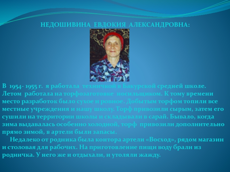 Слайд 3НЕДОШИВИНА ЕВДОКИЯ АЛЕКСАНДРОВНА:
