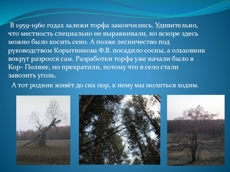 Слайд 7 В 1959-1960 годах залежи торфа закончились. Удивительно, что местность специально