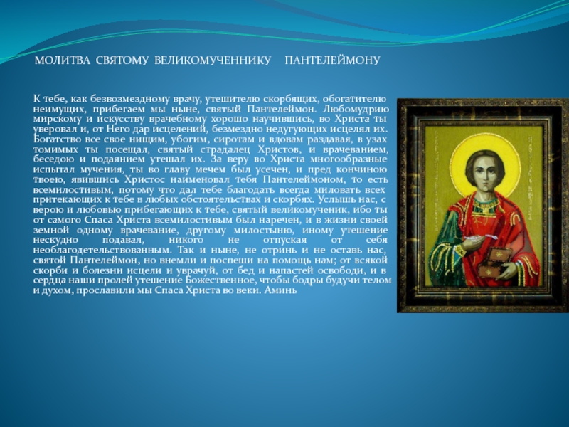 Слайд 11 МОЛИТВА СВЯТОМУ ВЕЛИКОМУЧЕННИКУ ПАНТЕЛЕЙМОНУ