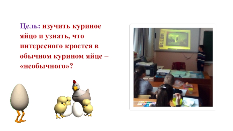 Слайд 4Цель: изучить куриное яйцо и узнать, что интересного кроется в обычном
