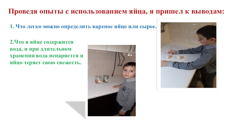 Слайд 17Проведя опыты с использованием яйца, я пришел к выводам: