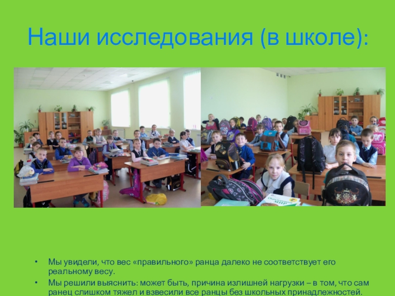 2. Взвесить ранцы без школьных принадлежностей у учеников нашего класса.