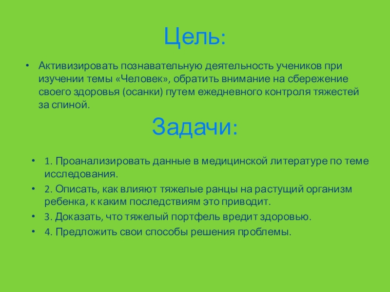3. Доказать, что тяжелый портфель вредит здоровью.