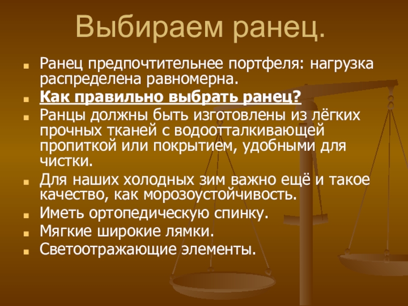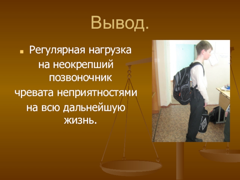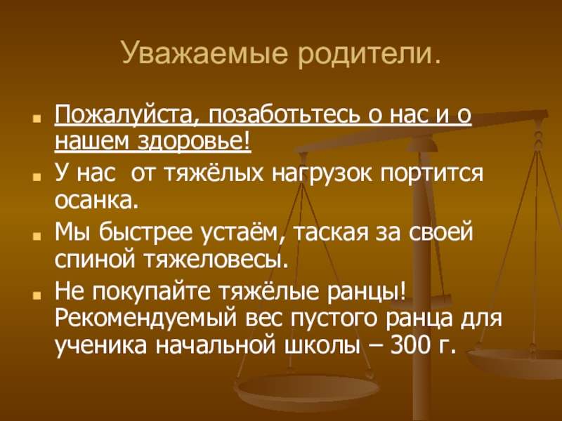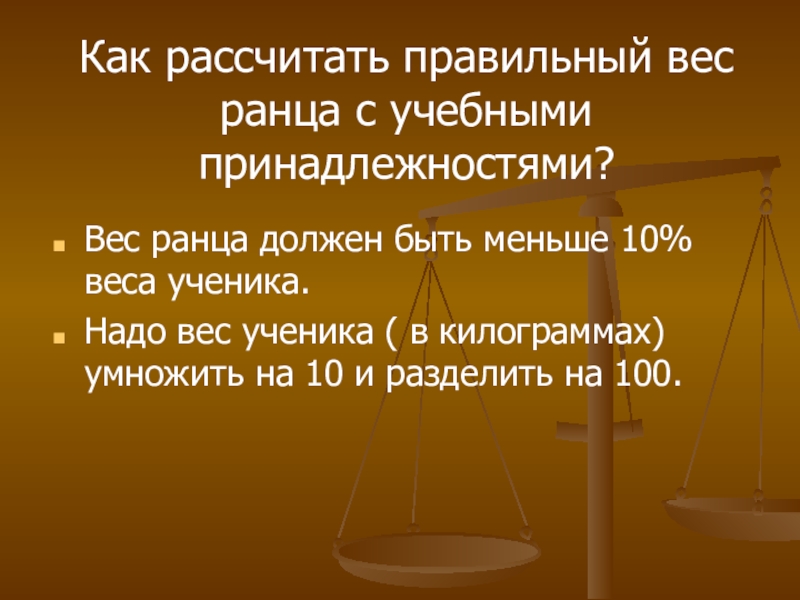 Слайд 25Вес ранца должен быть меньше 10% веса ученика.