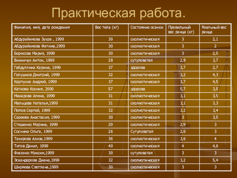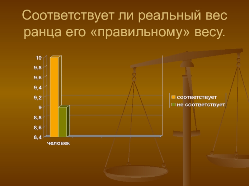 Слайд 27Соответствует ли реальный вес ранца его «правильному» весу.
