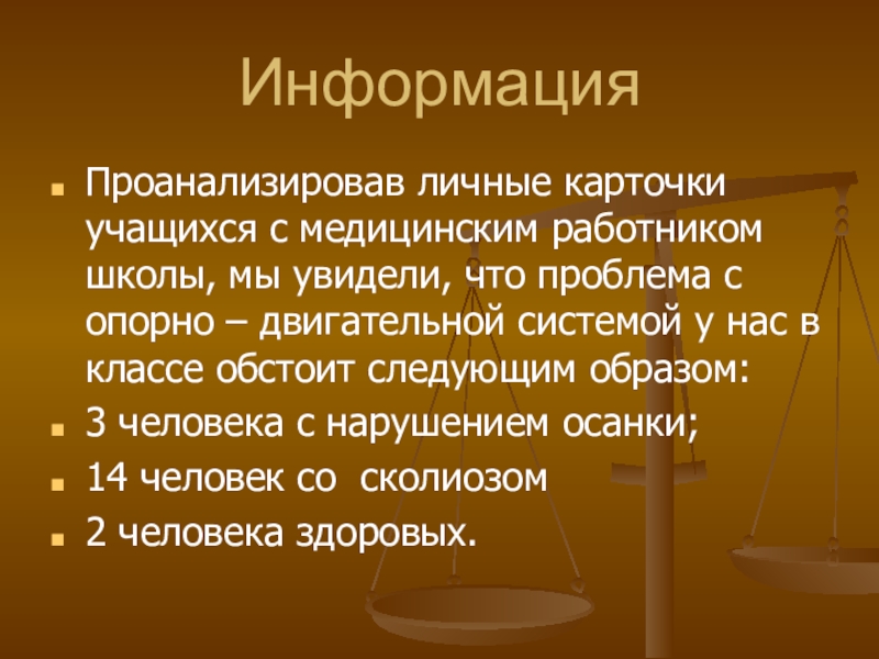 Информация о состоянии опорно-двигательной системы ребят нашего класса.