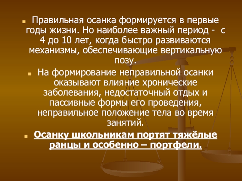 Слайд 5Правильная осанка формируется в первые годы жизни. Но наиболее важный период