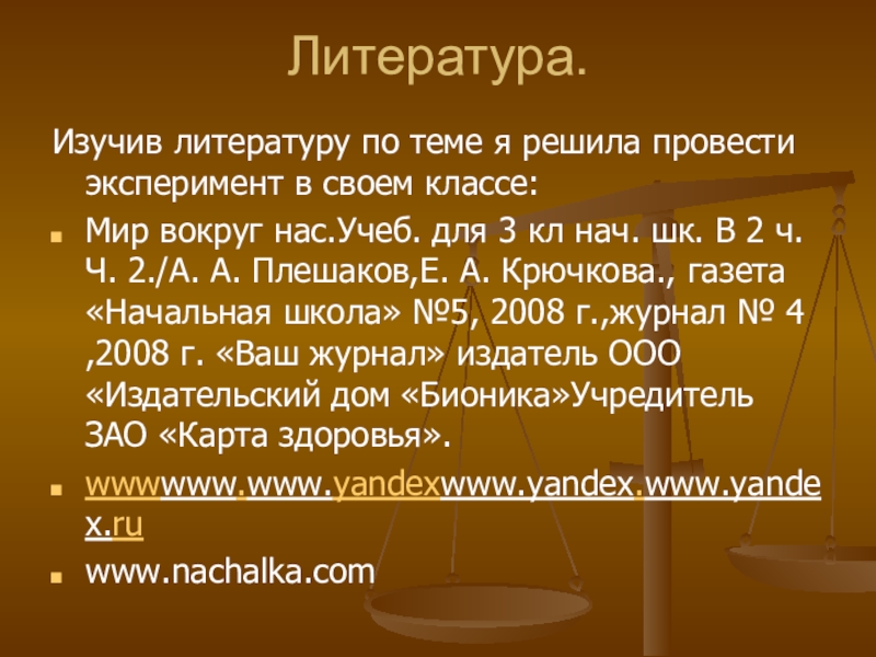 вокруг нас.Учеб. для 3 кл нач. шк. В 2 ч. Ч. 2./А. А. Плешаков,Е. А. Крючкова., газета «Начальная школа» №5, 2008 г.,журнал № 4 ,2008 г. «Ваш журнал» издатель ООО «Издательский дом «Бионика»Учредитель ЗАО «Карта здоровья».