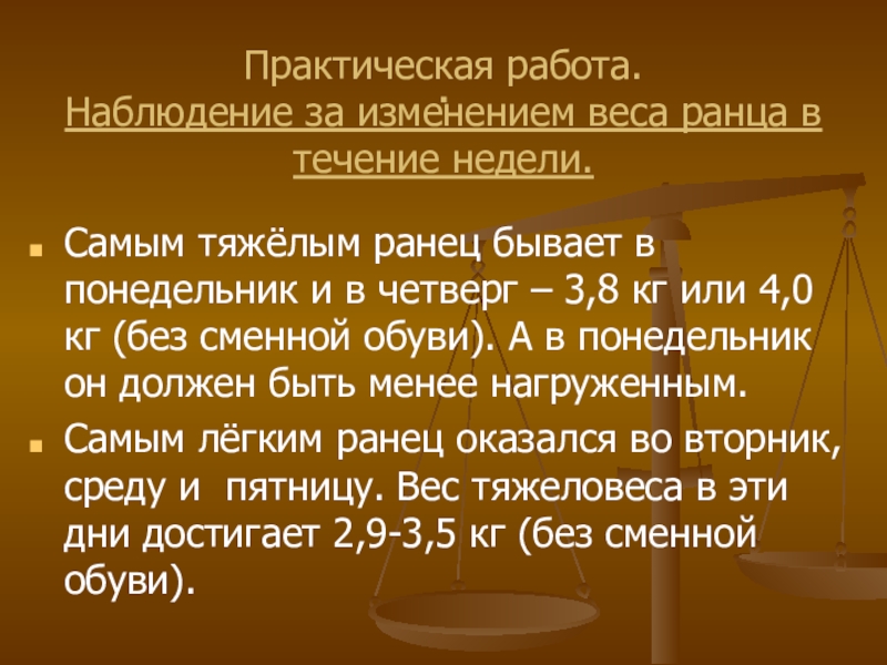 4. В течение недели наблюдать за изменением веса ранца в связи с учебными нагрузками.