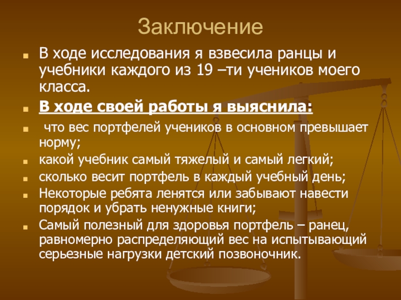 В ходе исследования я взвесила ранцы и учебники каждого из